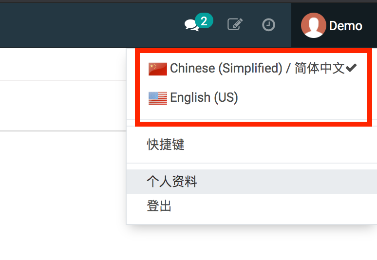 登录系统后,点击右上角的头像,然后点击你想使用的语言即可,见图1-1。