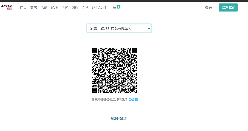 在图1-1中,点击"钉钉-扫码登录"-选择"安泰德清时装有限公司",然后打开钉钉右上角的扫一扫,扫描登录,如图1-2