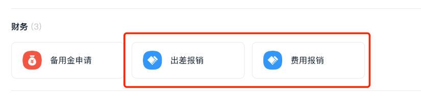 打开"钉钉工作台-OA审批",选择正确的公司组织,然后选择找到对应的审批单据,出差类的报销选择“出差报销”,其它类费用报销选择“费用报销”。见图1-1